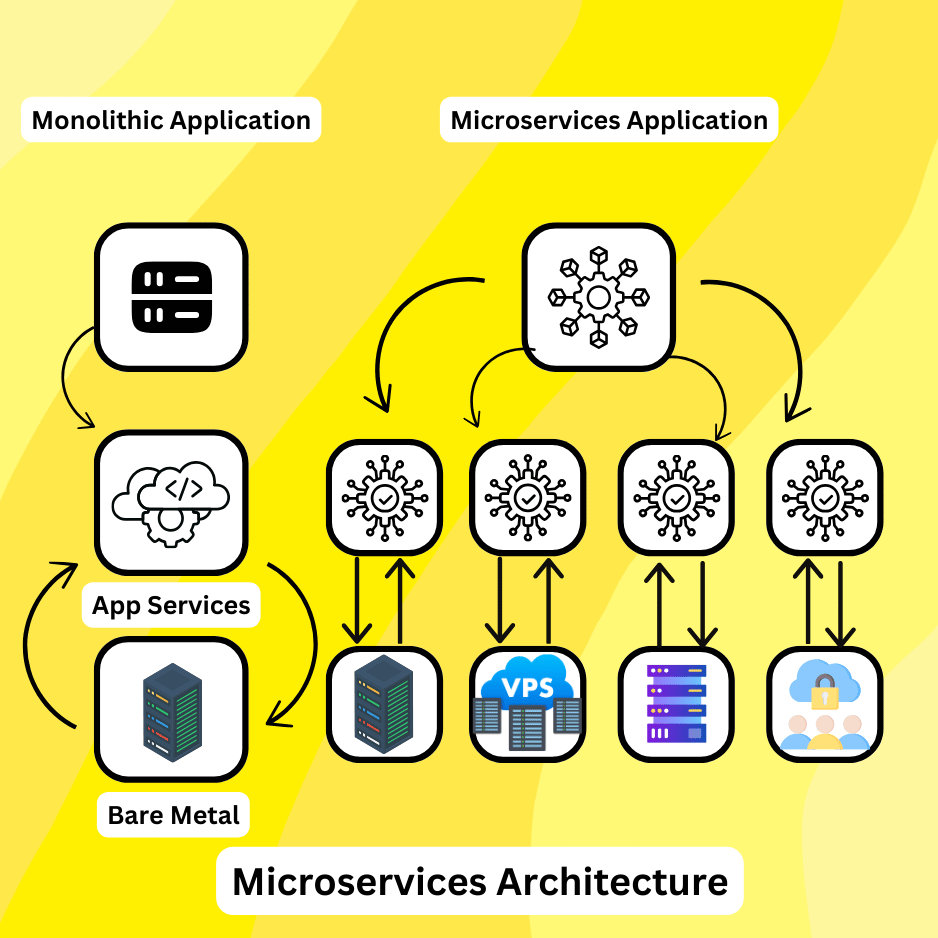 This setup shackles experimentation, making it hard for enterprises to stay nimble and responsive, which is a big disadvantage in a fast-paced, customer-centric market. Microservices come to the rescue by breaking down large applications into smaller, independent pieces. Each piece handles its own responsibilities, blissfully unaware of what the others are up to. When a user request comes in, a microservices-based application rallies these pieces together to get the job done. In a microservices architecture, the services engage in chit-chat through nimble APIs linking to intricate interfaces. Crafted for specific business tasks like money magic, invoice origami, and data wizardry, each service handles a solo mission. Running solo enables them to hit the town, get a facelift, and flex their muscles as per the demand for their special talents ๐Ÿ˜‚